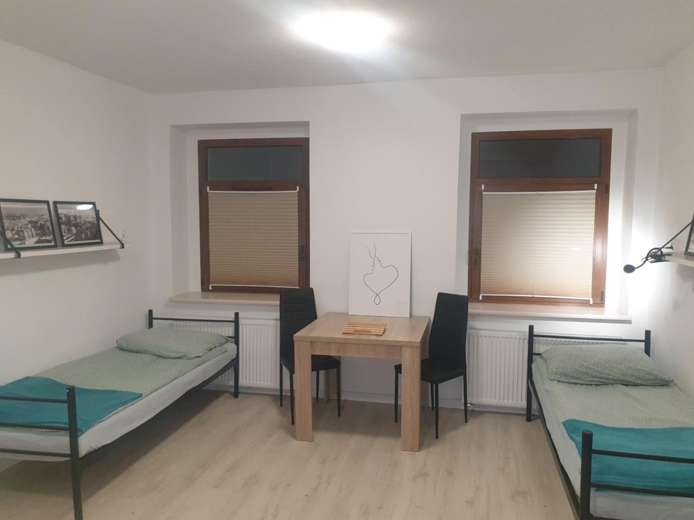 Pokój Dwuosobowy typu Budget. The double room offers a washing machine, a tea and coffee maker, as well as a shared bathroom boasting a walk-in shower and a hairdryer. In the kitchen, guests will find a stovetop, a refrigerator, kitchenware and an oven. The double room provides a wardrobe, parquet floors, heating, a flat-screen TV, as well as garden views. The unit has 2 beds. Pokój Dwuosobowy - 2 osobowy. Powierzchnia pokoju ok.: 13 mkw. ;