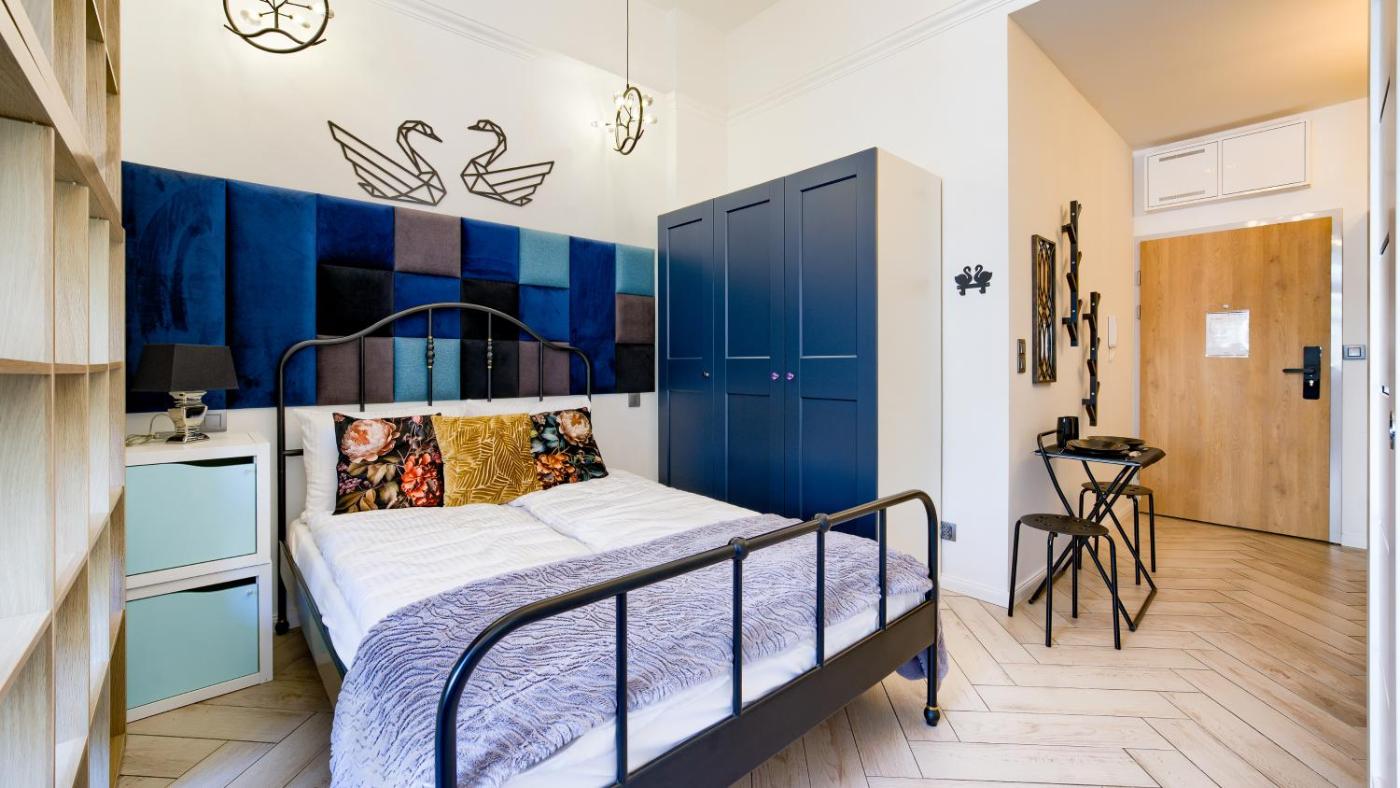 Studio. Meals can be prepared in the kitchenette, which features a stovetop, a refrigerator, a dishwasher and kitchenware. The studio features a washing machine and a wardrobe, as well as a private bathroom boasting a shower. The unit has 1 bed. Studio - 2 osobowy. Powierzchnia pokoju ok.: 28 mkw.